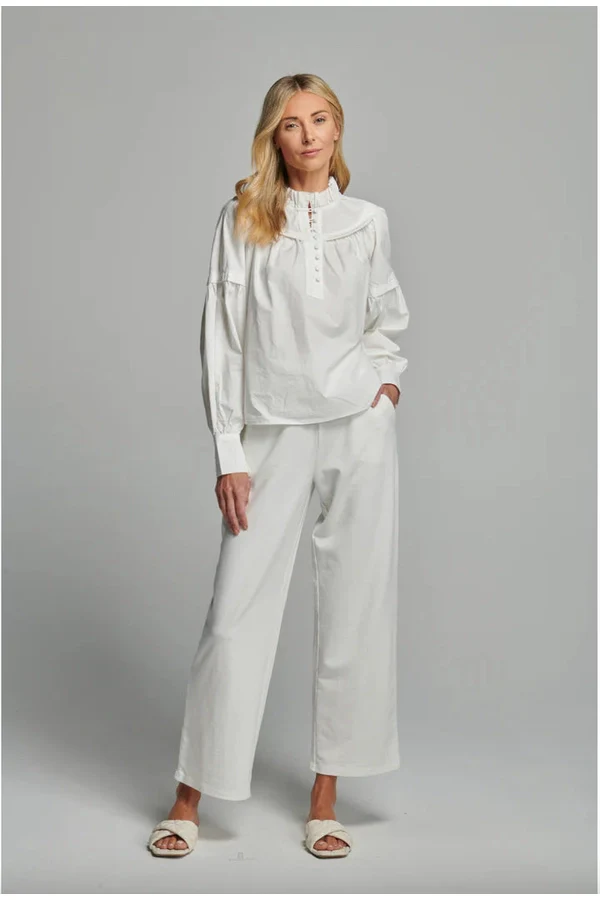 Camelia is new this season. Designed with a circular yoke and a rouleau button-front, Camelia's sleeves are gathered to create soft feminine details.