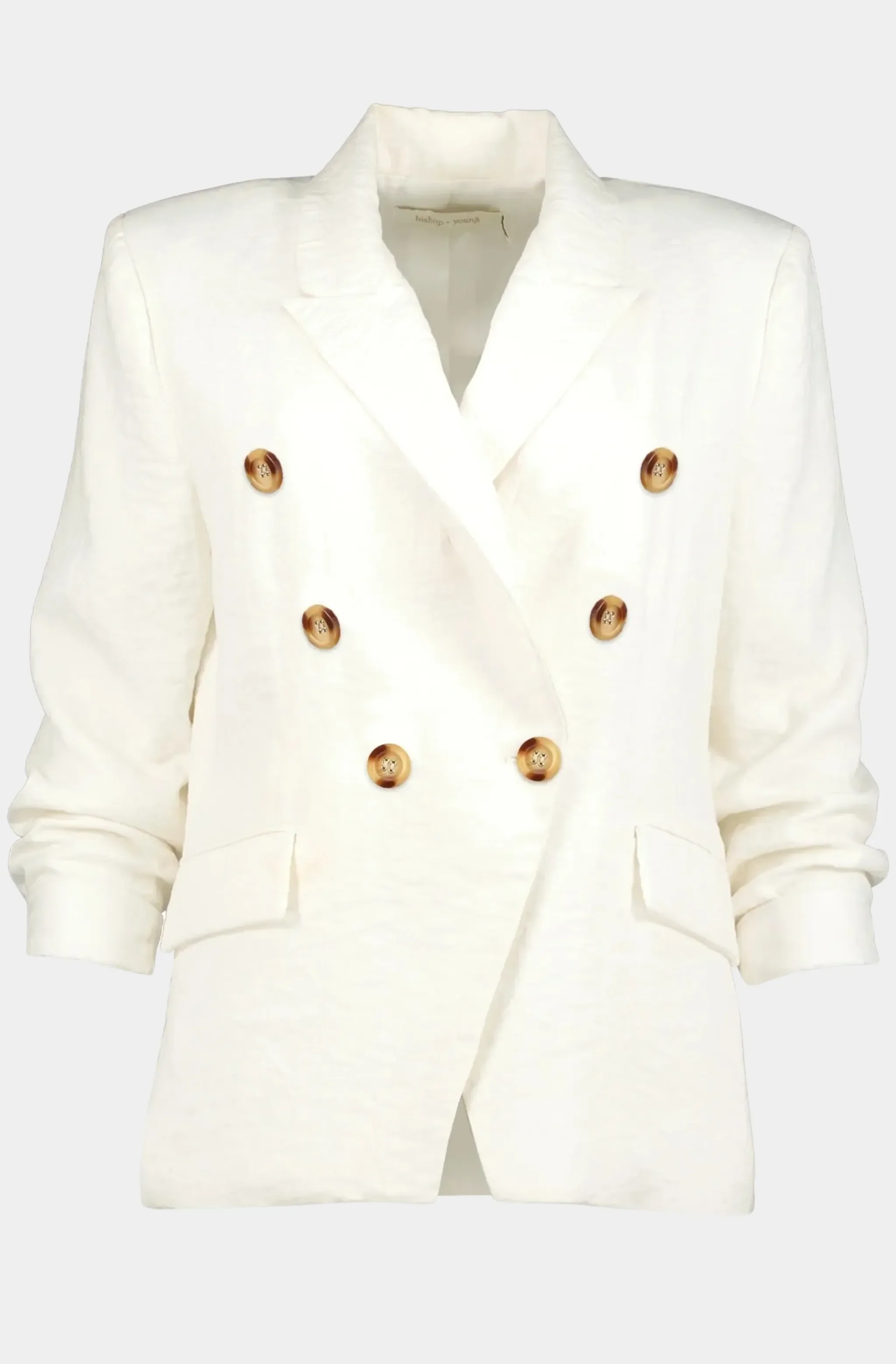 Introducing the Sorrento Blazer, the perfect addition to the Sorrento Set. Made with 47% Rayon, 36% Polyester, and 17% Nylon for a comfortable fit, it features a double breasted design, flap pockets, and a peak lapel. This blazer is true to size and will elevate any look.